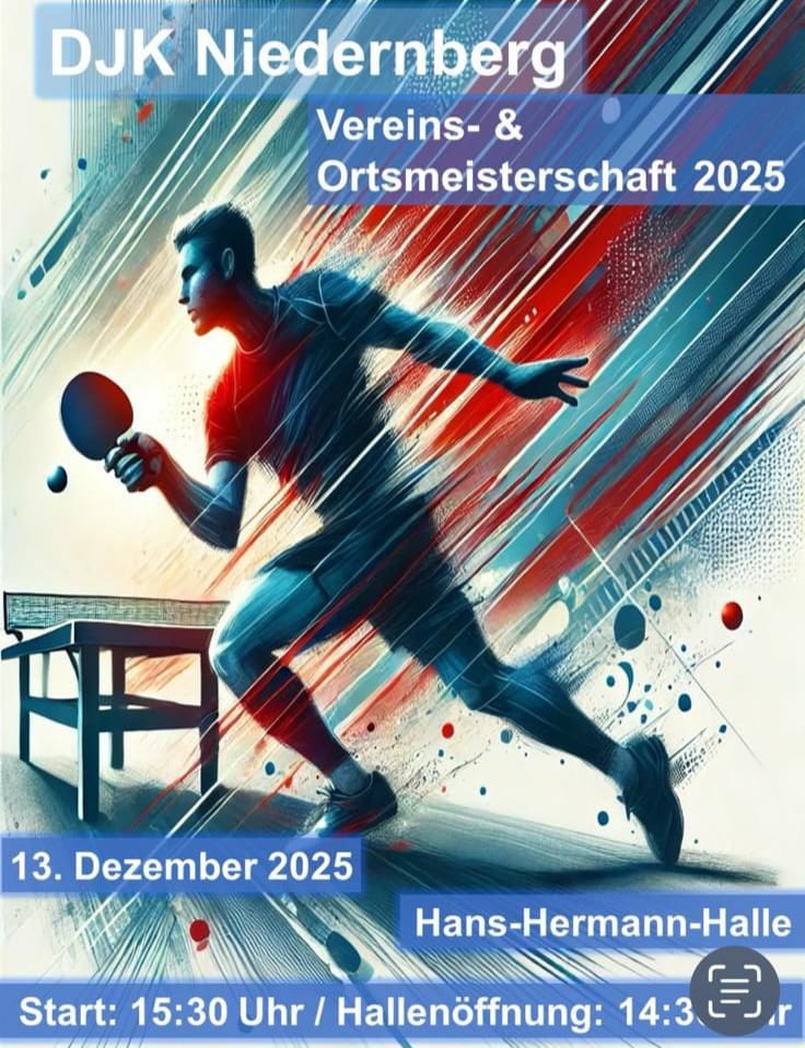Auf geht’s zur DJK „Tischtennis Ortsmeisterschaft 2025“in der Hans-Herman-Halle ab 15:30