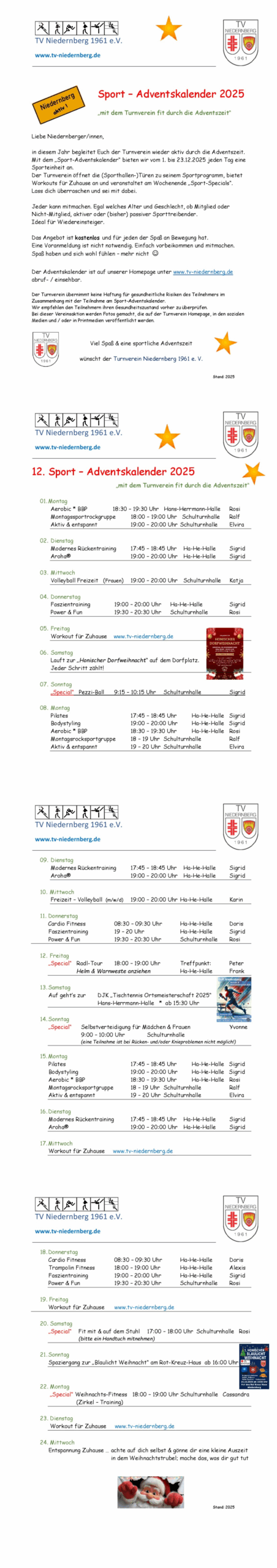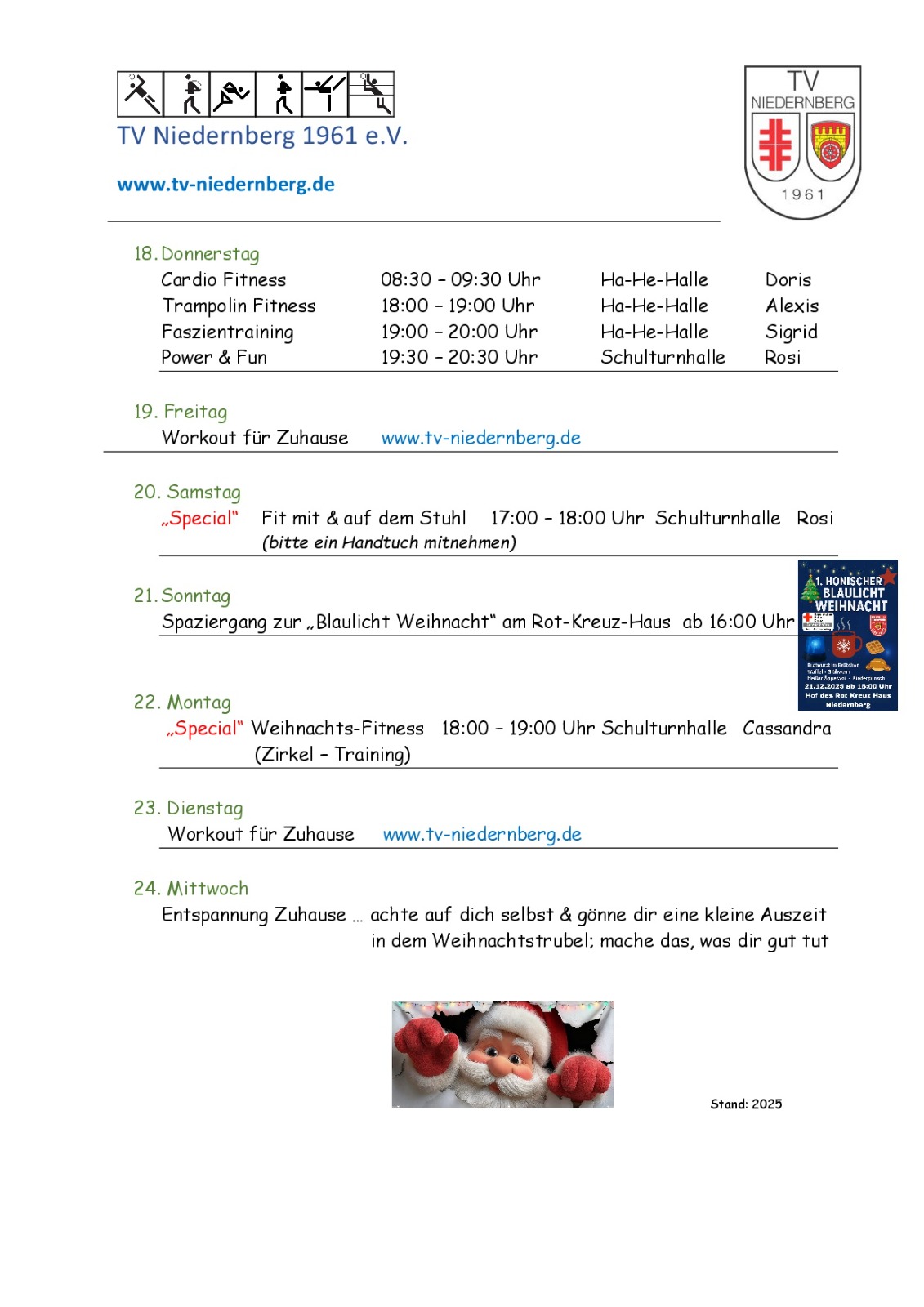„Special“ Weihnachts-Fitness 18:00 – 19:00 Schulturnhalle Cassandra(Zirkel-Training)